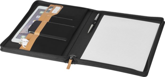 - Featuring a zipper closure, pen loop, accordion pocket, and 20 white lined sheets with 70 g/m2 recycled paper from sustainable sources