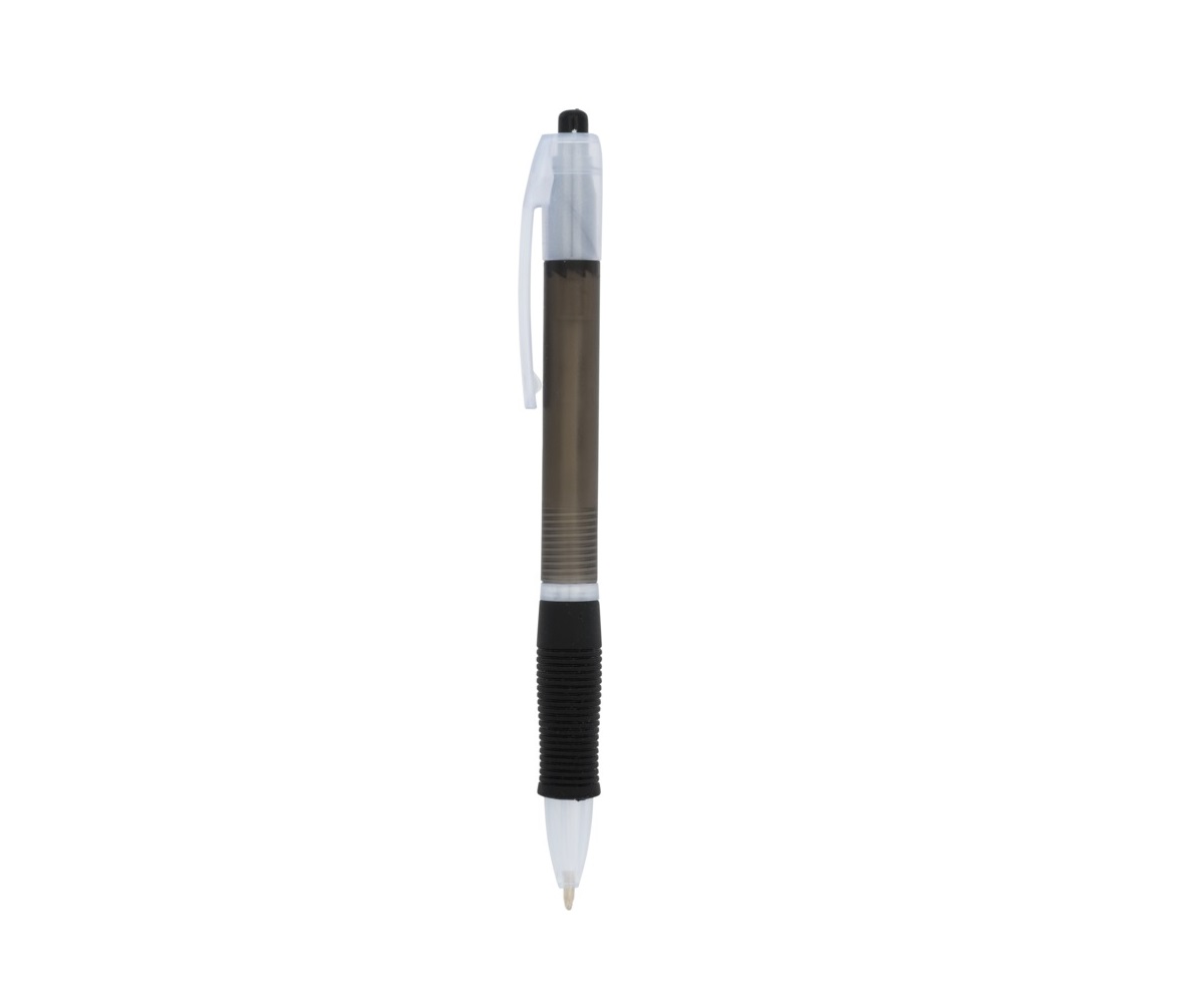 - Colourful click action ballpoint pen with transparent barrel and matching colour rubberized grip